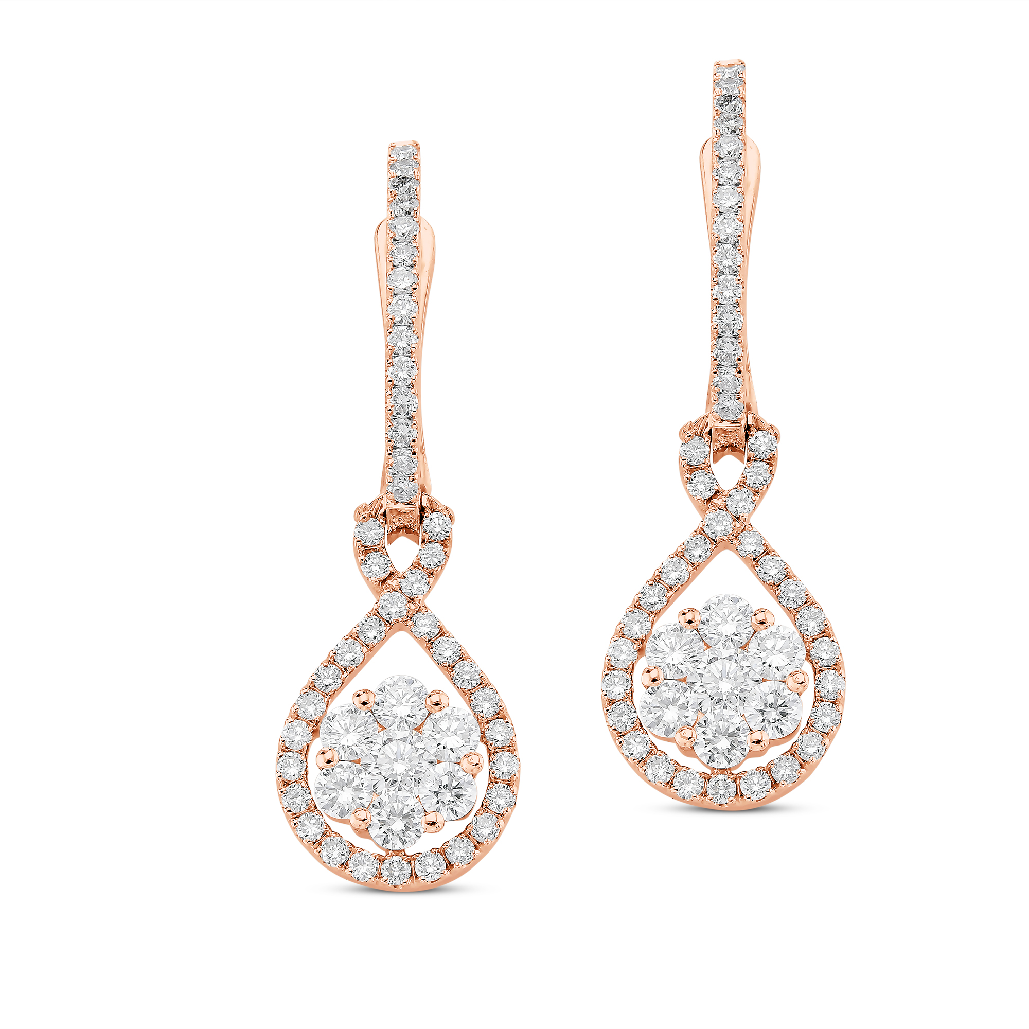 זוג עגילי לב משובצים יהלומים
