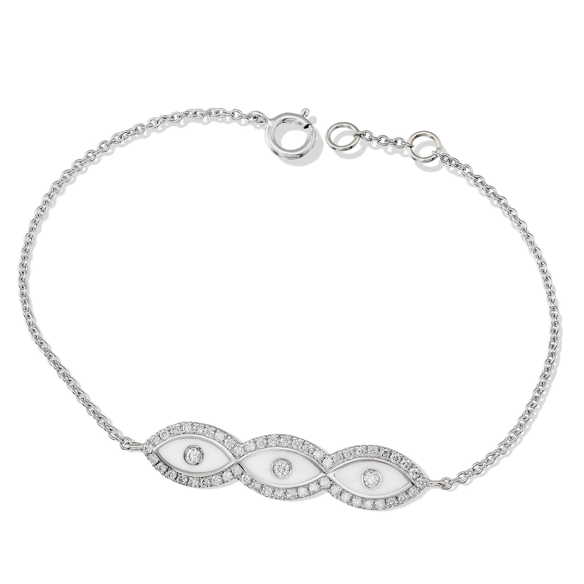 צמיד 3 עיניים משובץ יהלומים ואמייל