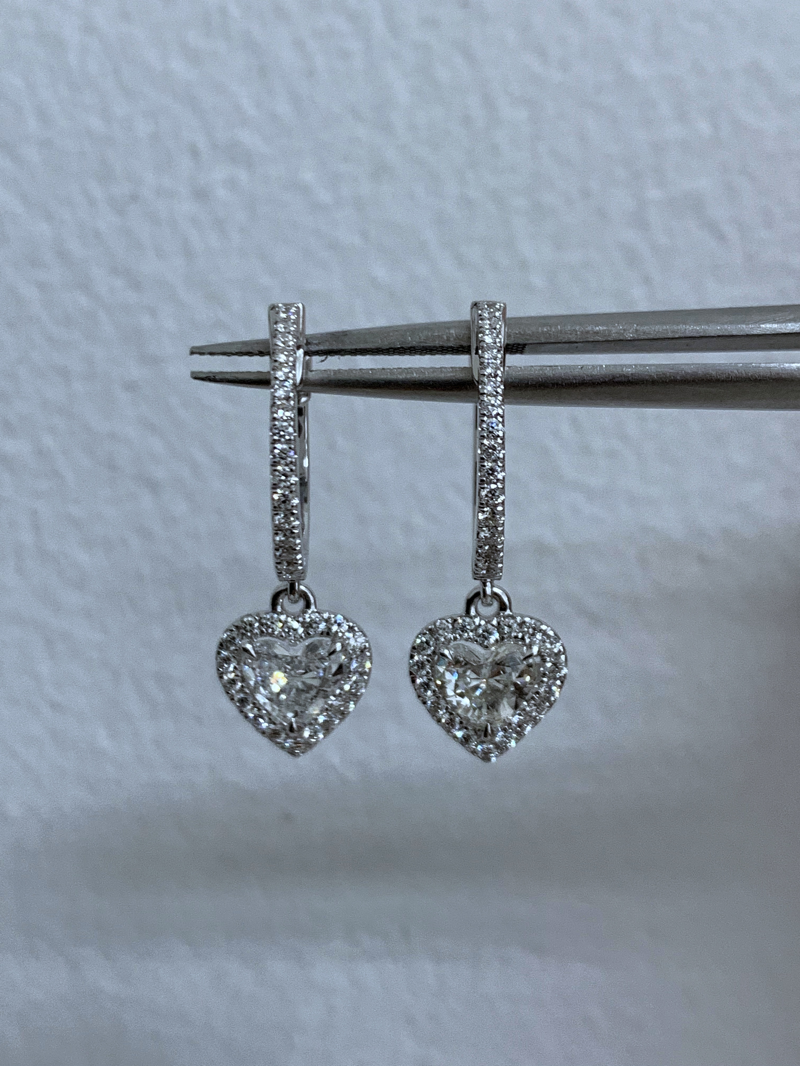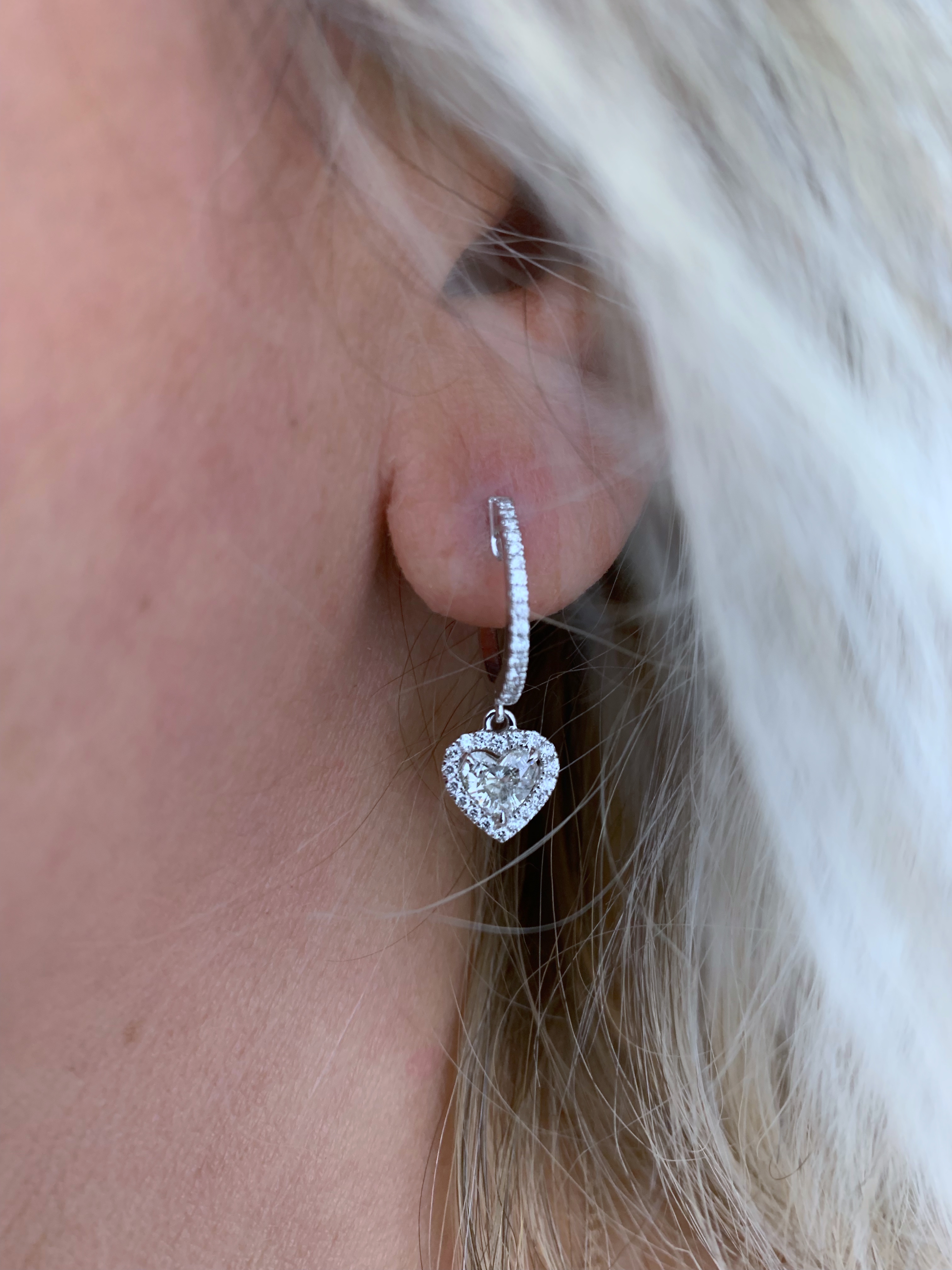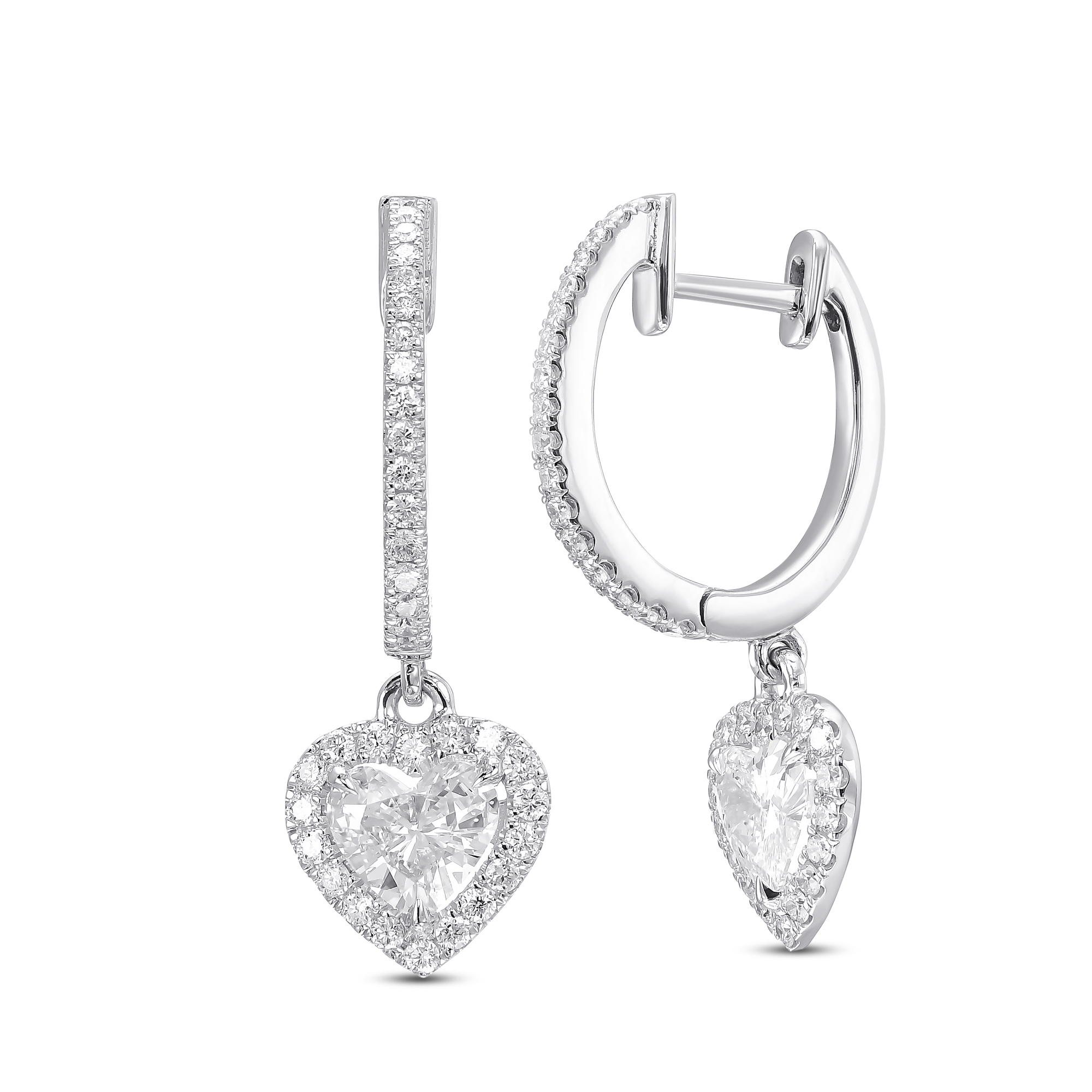 זוג עגילי לב משובצים יהלומים