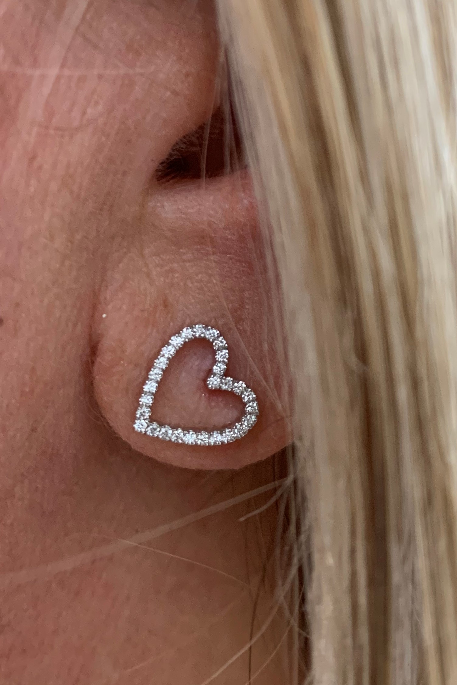 זוג עגילי לב משובצים יהלומים