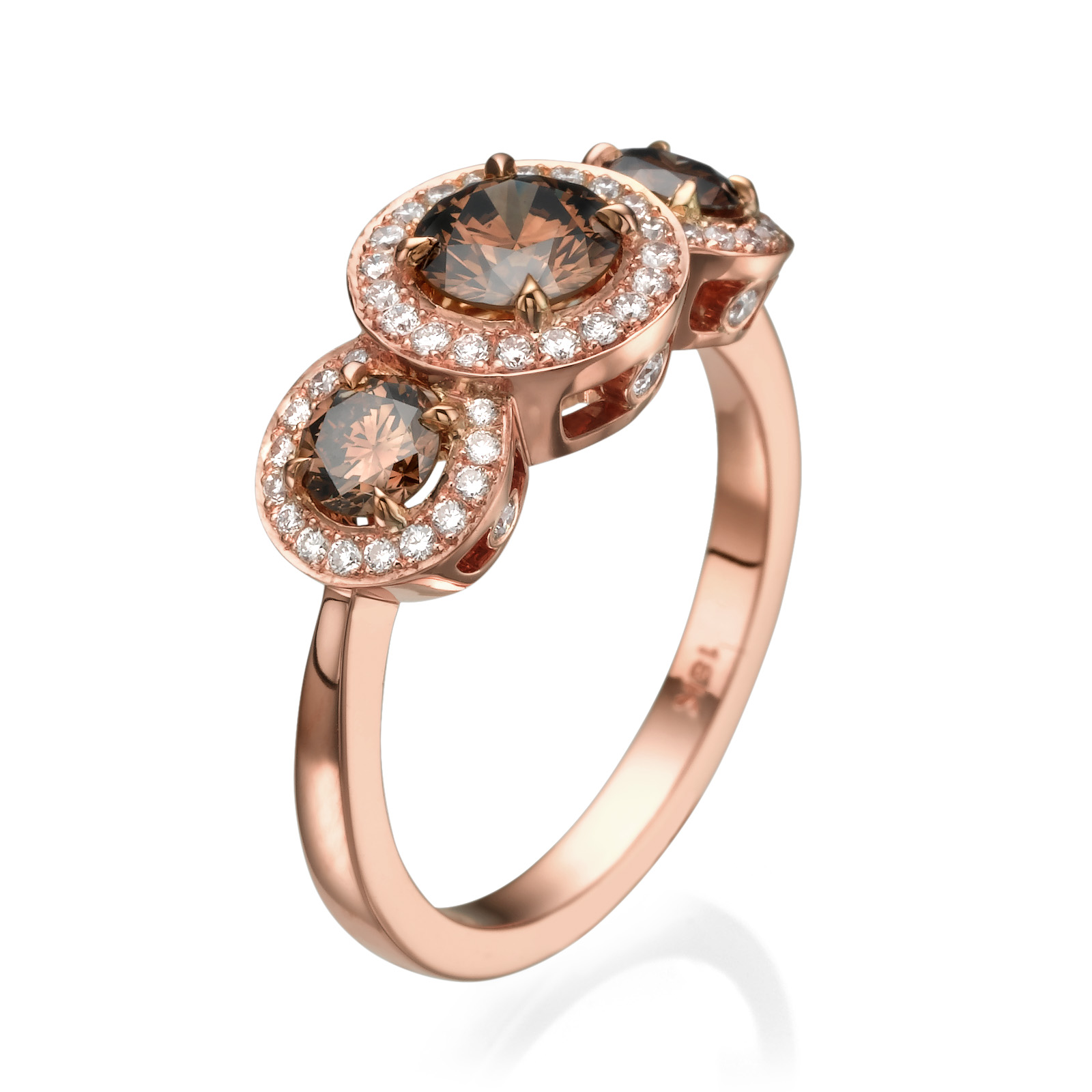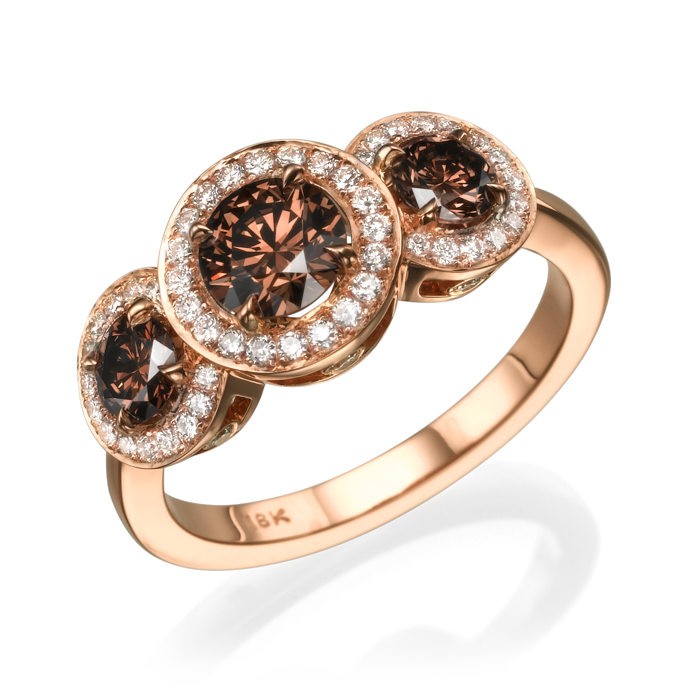 Three stone ring with brown diamond